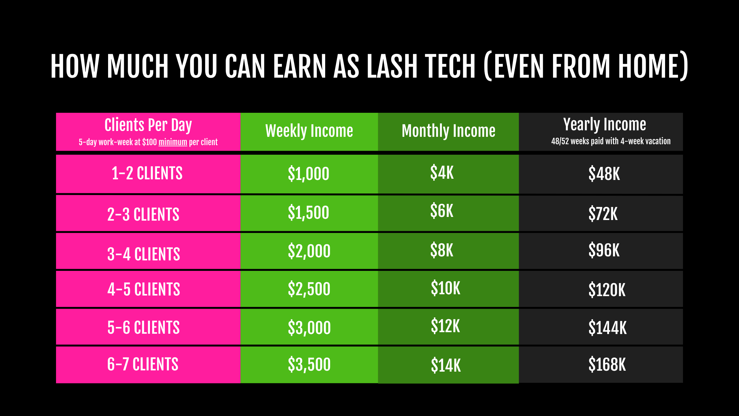 Here's the REAL MATH using beginner-friendly pricing. (You don't need a big audience or a salon. Just your hands, your time & the Rich Lash® System.)